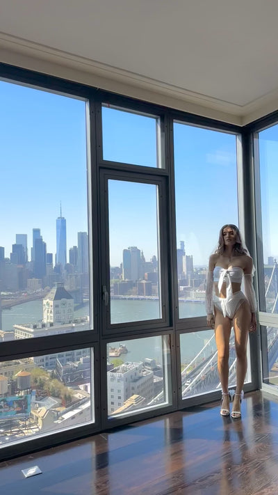 Look and feel your best in the PALERMO TOP - a timeless bridal swim top designed for your post-wedding festivities. Detachable lace sleeves and front tie provide endless styling options, making it perfect for the beach, fancy dinners, and everything in between. Be the belle of your honeymoon and beyond!